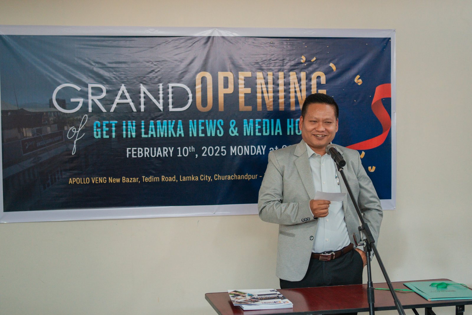 Zia hun ahin zinza um apang LM Khaute, MLA, Lamka (58-CCPur A/C) in GetinLamka News & Media House hawndaw na ding in ribbon cutting anei a, Zia zaw in, GetinLamka News & Media House hawn dawna hun aum hi. Hun mat sung in, Lianboi Vaiphei in ma apui a programme sim thak na aum hi. Lamtua na thucha S. Malsawm, Founder & Chief Editor in anei a, aman ahoulimna athugen na ah GetinLamka News hi Vaiphei pau ah News kisim ahia, News Entute leh ngaithatute a ding ah thu kichian, thudik leh pawimawte hilsawn zel ding hi GetinLamka News tuple dawi ahi tin agen hi. Chuleh, GetinLamka News in thusua suadawk thei na ding in government dan toh kituak in phalna bukim le akinei hi ati. GetinLamka News Founder & Chief Editor S. Malsawm in houlimna anei zaw in zinzaum LM Khaute in houlimna anei hi. Aman ahoulimna ah, GetinLamka News & Media House hawdaw thei ah aumna chung ah akipak pi na thu aphuang a, maban a News kingakna thei, media house dangte sang a thudik leh dawichuam nei ah thusua bawl lou ah, thusua um te ahi gual gual ah thupia sawn tu pang ding in adawisak na thu apuang hi. Chuleh, Media/Journalist ten akum lut a thu khualna anei teu ahem ahilou leh Media/Thusua mi ten thu dik azik te /aphuan daw uh government in le evidence ding leh document poimaw tak a kimang sek ahi tinle agen hi. Aman houlimna aneizaw in kipak thugenna Pauchungnung Vaiphei, Associate Professor, CCPur College in anei hi. Chun, hunkhak na ding leh GetinLamka a ding a Malsawmna dawtpiak na Pu Ginlalthuam, Mualngat Hausapu in anei hi.