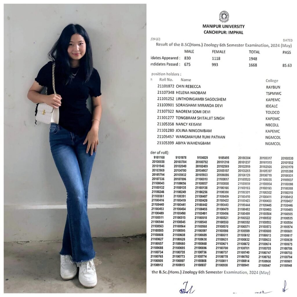 Manipur University, Canchipur in tuni BSc(Hons.) Zoology examination results ahun tak daw na chun Miss Chin Rebecca hin Manipur state pumpi a thiampen hina la in ahun pang hi.
