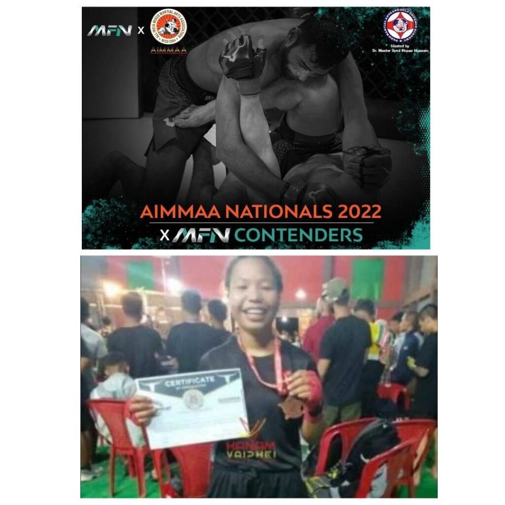 Nk. Niangngaidim d/o Kamthiankham hi AIMMAA Nationals 2022, MFN, Telengana, Hyderabad ah 30th Sept. – 2nd Oct. 2022 sung ah um ding ah kisingsakna nei ahi dan thu hiat ahin, Iki pakpi tak zet ui. Zia gual a i Gamsung ading a Numei Sport lamlunglut inei uh hi pachat um tak ahi.