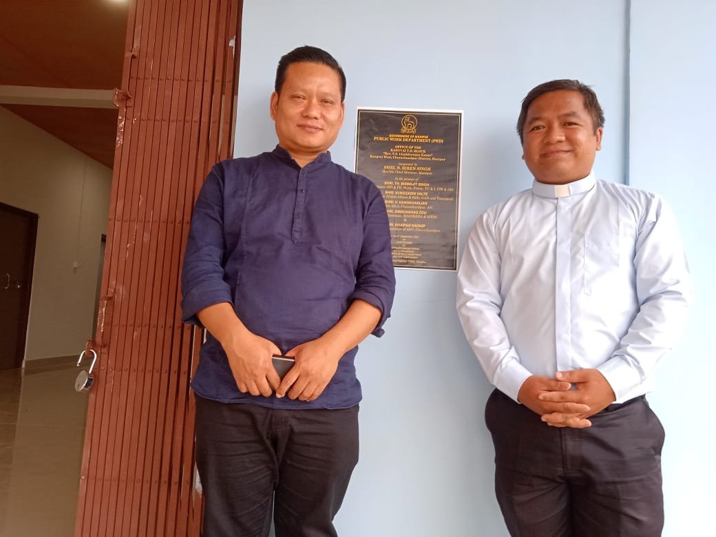 Tuni chun, Rev. V. S. Liankhawpau Estate, Kangvai T. D. Block Office dinga a donate nau ah (L) Rev. V. S. Liankhawpau tu leh cha ten an ne khawm na leh Pauchap khawm na hun ala mang ui.
